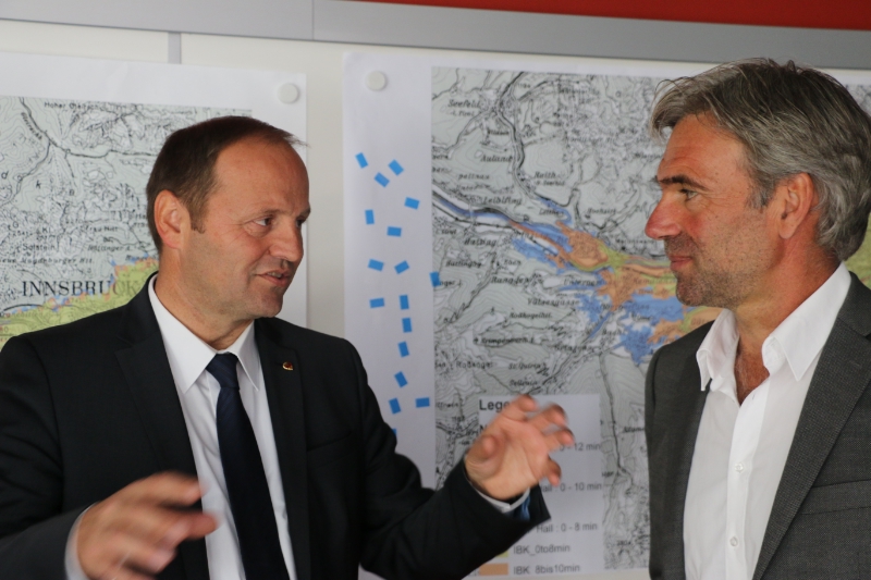 I due politici si sono erano accompagnati, l'uno dal direttore del Dipartimento alla sanità Thomas Mathà, l'altro dal direttore della centrale d'emergenza "Leitstelle Tirol", Martin Eberharter e sono stati accolti presso la"Leitstelle" dal managing director Gernot Vergeiner.