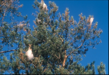 La Processionaria del Pino (Traumatocampa pityocampa) è in Alto Adige il parassita forestale che richiama maggiormente l’attenzione dell’opinione pubblica in virtù dei nidi bianchi che svettano sulle cime dei pini.