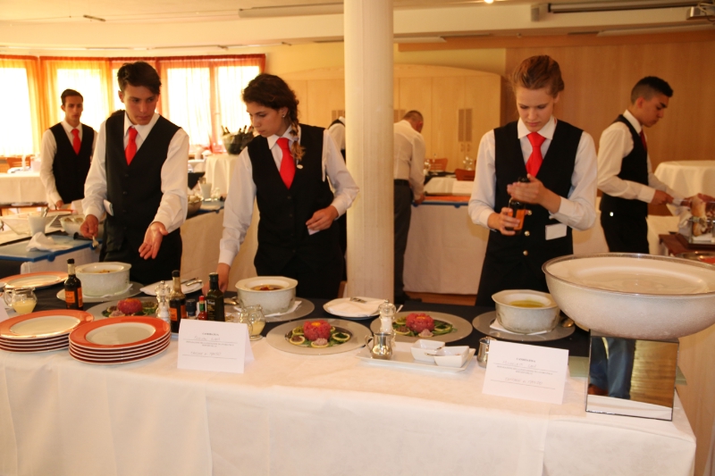 Una decina di giovani allievi del terzo anno dell'indirizzo sala della Scuola professionale provinciale alberghiera "Cesare Ritz" di Merano hanno sostenuto oggi (9 giugno) la prova pratica del loro esame di qualifica.