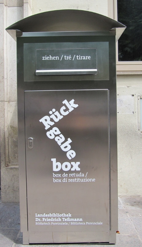 Dal 20 luglio al 1° agosto prossimi la biblioteca provinciale Teßmann in via Diaz 8 a Bolzano resta chiusa al pubblico per lavori interni. La restituzione dei media sarà possibile 24 ore su 24 tramite il box di restituzione collocato davanti all'ingresso della Biblioteca Provinciale. Il box viene svuotato più volte al giorno dal personale della biblioteca provinciale che registra la restituzione dei libri.
