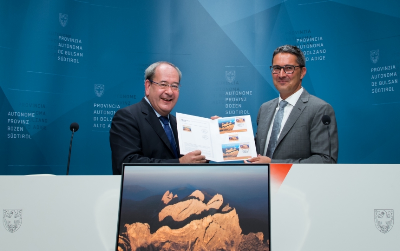 Il Presidente Kompatscher spiega l'importanza del nuovo francobollo dedicato alle Dolomiti