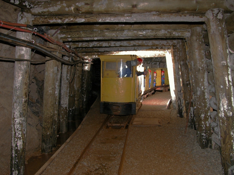 Dopo la pausa pranzo i partecipanti, attrezzati con stivali, cerata, elmetto e lampada frontale, vengono trasportati con un bus all'imbocco della galleria Poschhaus, a 2.000 metri di quota, da dove si entra a bordo del trenino dei minatori per 3,5 km nella montagna, fino al giacimento del minerale.