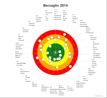 Il Sistema di valutazione delle performance del sistema sanitario é stato progettato dal Laboratorio management e sanità della Scuola superiore Sant'Anna di Pisa, diretto da Sabina Nuti, professore di economia e gestione delle imprese, che ha presentato all'Assessorato alla Sanità i risultati del "Bersaglio 2014" e discusso i risultati con i dirigenti della sanità provinciale e gli operatori sanitari e amministrativi dell'Azienda Sanitaria. Sono circa 200 gli indicatori selezionati per lo studio, tra cui lo stato di salute della popolazione, la capacità di perseguire le strategie provinciali, la valutazione sanitaria, la valutazione dell'esperienza degli utenti e dei dipendenti e la valutazione della dinamica economico-finanziaria e dell'efficienza operativa. I risultati sono appunto rappresentati tramite uno schema a bersaglio, che offre un intuitivo quadro di sintesi della performance ottenuta in Alto Adige, illustrandone punti di forza (settore verde) e punti di debolezza (rosso).