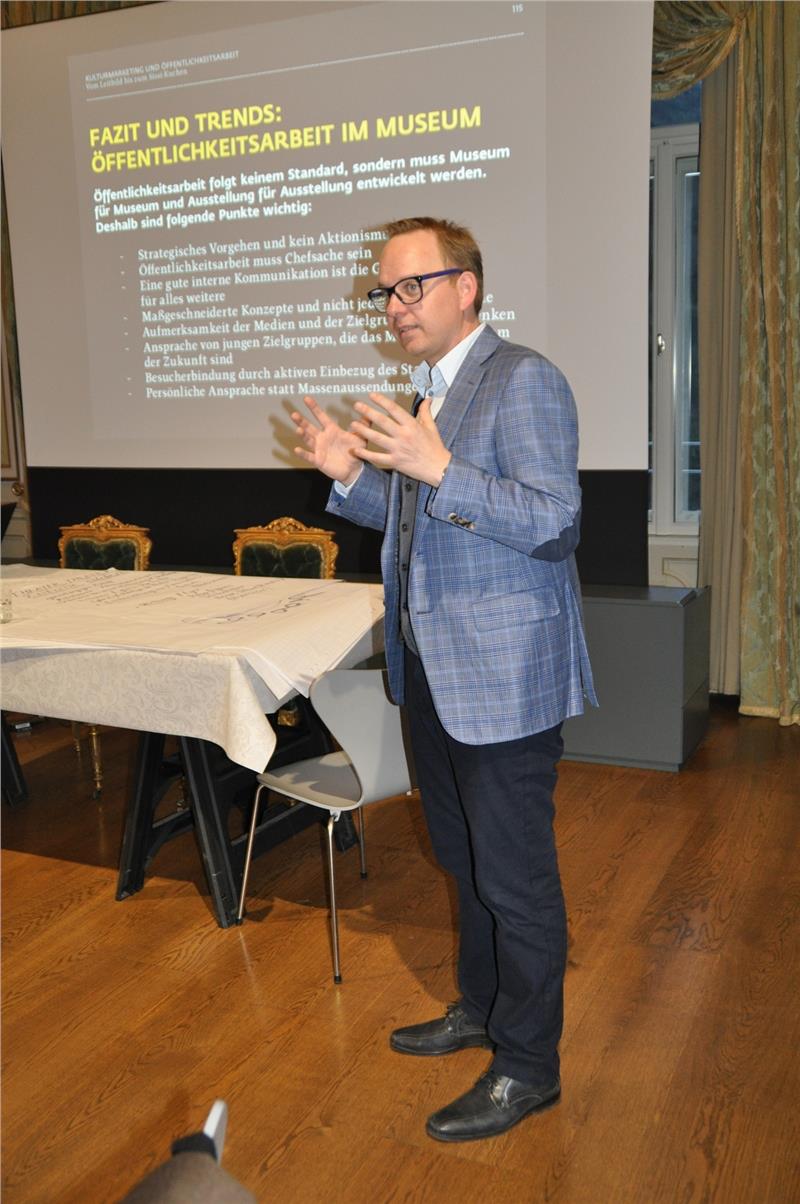 Ohnewein ha spiegato le differenze tra pubbliche relazioni e marketing, entrambi fondamentali anche in ambito museale per valorizzare il “prodotto”, che si tratti del museo stesso o di una sua mostra. Fondamentale è che sia di qualità e che venga comunicato con trasparenza e chiarezza: contenuti vuoti o false promesse rendono inefficace l’attività di pubbliche relazioni, portando a una perdita di immagine e di credibilità. La comunicazione deve essere, in questo senso, il più possibile efficiente. A questo scopo, per posizionare l’istituzione museale possono essere utilizzati anche singoli oggetti espositivi particolarmente rappresentativi: il relatore ha portato l’esempio della “torta di Sissi”, donata al Touriseum nel dicembre 2015 e che ha trovato ampio spazio sui mass media. Una questione, quella di quanto i musei stessi riescano a influenzare i media, che è centrale e che punta a avvicinare la percezione interna del museo a quella esterna.