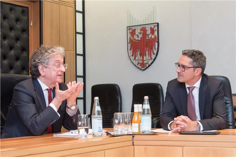 Il presidente della Provincia di Bolzano, Arno Kompatscher, ha ricevuto oggi (19 maggio) a Palazzo Widmann il viceministro dell'economia Enrico Morando. Durante l'incontro si è parlato innanzitutto di bilancio armonizzato e di patto di stabilità, temi che rientrano fra quelli previsti dal patto di garanzia sottoscritto nel 2014 tra il governo nazionale e quello altoatesino. "Si tratta di argomenti che contengono sfide importanti per la nostra autonomia - ha sottolineato Kompatscher - il viceministro Morando ha riconosciuto le particolari necessità della Provincia di Bolzano, e ha assicurato il suo sostegno". In Senato, infatti, è stata già presentata una proposta di modifica che renderebbe possibile utilizzare gli avanzi di amministrazione mettendo così a disposizione ulteriori risorse pubbliche.