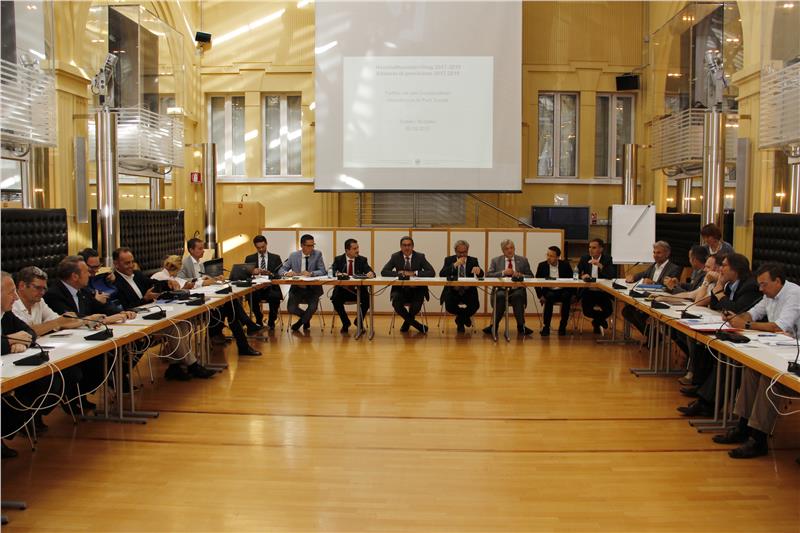 Le prime stime sul bilancio di previsione 2017 sono state illustrate nel pomeriggio di oggi (6 settembre) alle parti sociali e ai membri della commissione legislativa consiliare dal presidente della giunta, Arno Kompatscher, e dai tecnici della Ripartizione bilancio. Presenti anche gli assessori provinciali Christian Tommasini, Richard Theiner, Florian Mussner, Waltraud Deeg, Arnold Schuler e Martha Stocker.