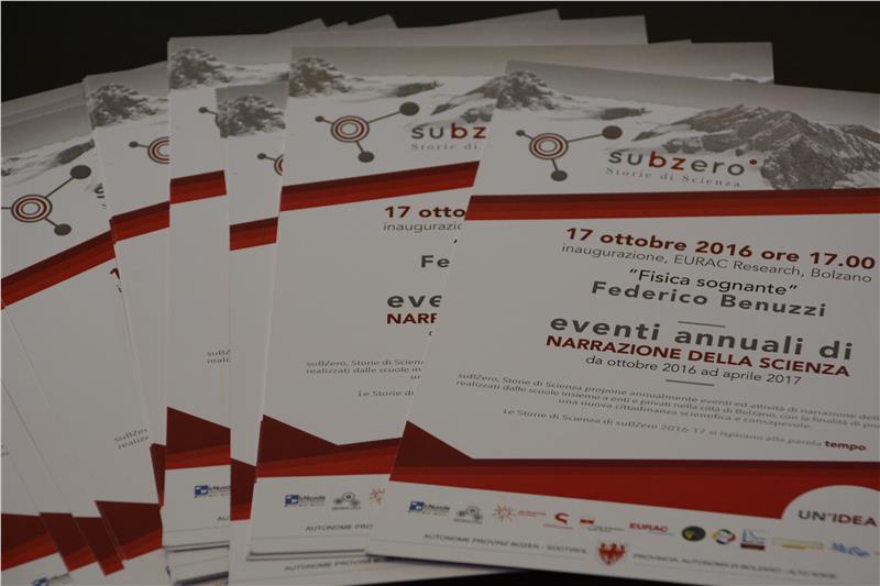 L’ispettore per l’ambito scientifico matematico, Mauro Valer, ha quindi illustrato nel dettaglio il programma della manifestazione che dal 17 al 19 ottobre coinvolgerà numerose scolaresche e docenti. “suBZero, Storie di Scienza” sarà inaugurata lunedì 17 ottobre da un incontro con Federico Benuzzi all’Eurac intitolato “Fisica sognante”.