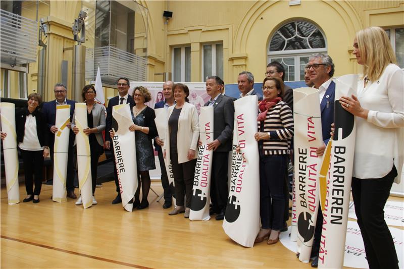Il presidente della Provincia, Arno Kompatscher, l’assessora alla sanità ed alle politiche sociali, Martha Stocker, e la direttrice dell’Ufficio persone con disabilità, Luciana Fiocca, hanno presetato questa mattina l’iniziativa “Tappeto senza barriere” che fa parte della campagna di sensibilizzazione, avviata nel 2015, contro la barriere architettoniche.