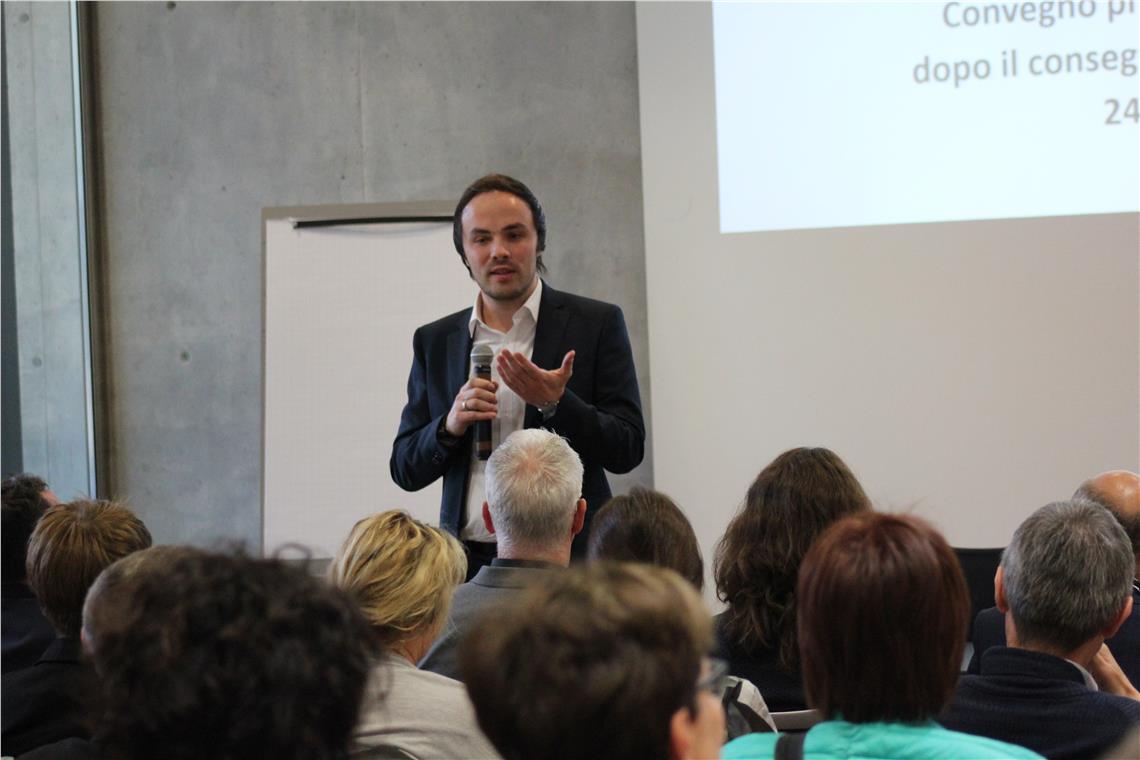 I giovani dei territori Arge Alp in possesso di una formazione professionale possono accedere alle scuole universitarie professionali (Fachhochschulen) o alle università? Se sì, a quali condizioni e con quali percentuali di successo? A queste domande hanno cercato di rispondere circa 40 funzionari e tecnici della formazione dei territori Arge Alp nell’ambito del convegno "Prospettive di studio dopo il conseguimento del diploma" all’Eurac di Bolzano. Cinque testimonial – giovani e tecnici – provenienti da Germania, Austria, Svizzera e Italia, hanno riferito delle proprie esperienze, come quella dell’altoatesino Michael Rizzi che ha concluso la formazione universitaria in falegnameria e costruzioni in legno a Rosenheim con la maturità professionale per la prima volta applicata nel 2015. Il direttore di scuola professionale Martin Wirsching ha parlato dell’offerta formativa bavarese. Mauro Frisanco ha parlato del sistema formativo del modello trentino. Roland Teissl, della direzione tirolese della formazione, ha chiarito il modello "Accademia duale", mentre Meret Schmidhauser ha raccontato la propria esperienza in uno studio di architettura, l’iscrizione al ETH di Zurigo e infine il laboratorio per la psicologia animale.
