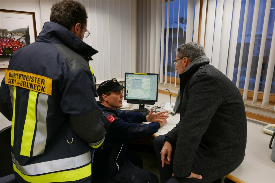 Kompatscher (dietro, 2. da dx) si informa nella sede comprensoriale della Pusteria sul lavoro dei soccorsi (Foto ASP/Dominik Holzer)