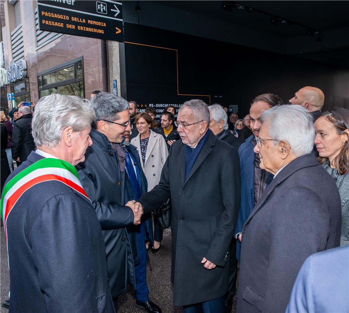 La seconda parte della visita ufficiale dei presidenti della Repubblica di Italia e Austria, Sergio Mattarella e Alexander Van der Bellen, si è svolta a Bolzano. Su invito del presidente della Provincia, Arno Kompatscher, accompagnati anche dal sindaco del capoluogo, Renzo Caramaschi, i due presidenti hanno visitato due luoghi simbolo delle sofferenze che il nazi-fascismo ha portato con sè nel corso del '900. Prima tappa la Residenza Stillendorf, in via dei Vanga, dove venne ucciso il maestro Franz Innerhofer, quindi la visita al muro del lager di via Resia.