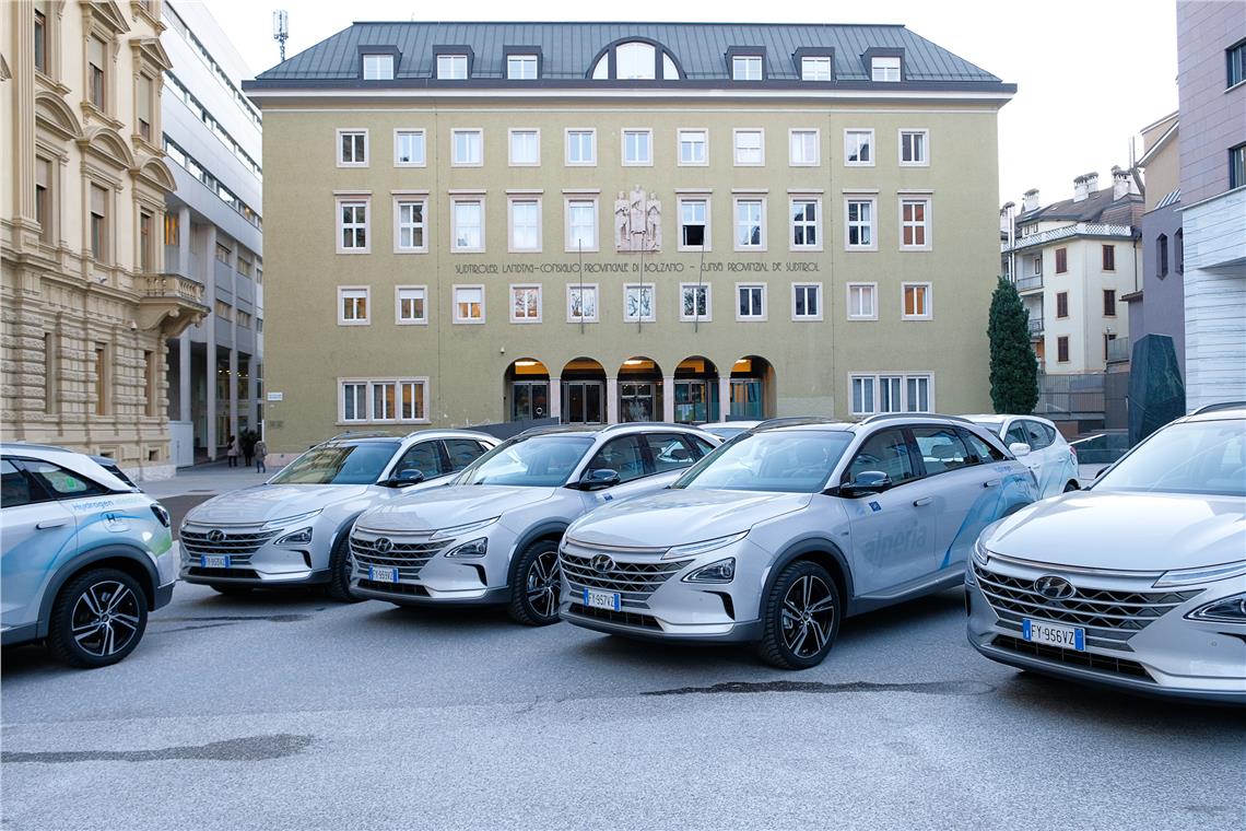 La Provincia di Bolzano rafforza il suo primato nella mobilità green. Oggi (6 febbraio) in piazza Magnago sono stati consegnati 10 nuovi veicoli elettrici con cella a combustibile, prima flotta di questo genere in Italia. I veicoli saranno noleggiati a lungo termine a una decina di utenti: fra questi anche la Giunta provinciale altoatesina, che intende assumere un ruolo modello in tema di mobilità sostenibile. "Tocca a noi di dare il buon esempio e dimostrare che guidare a zero emissioni è possibile" ha detto il presidente della Provincia Arno Kompatscher in occasione della consegna ufficiale delle chiavi dei nuovi veicoli. Gli altri destinatari delle auto sono enti o aziende pubbliche (Eurac Research, Alperia, A22, IDM, Centro sperimentale Laimburg) ma anche aziende private (Microtec, Camping Moosbauer). I veicoli sono stati acquistati dalla società di trasporto pubblico SASA – che già conta nella sua flotta 5 bus a idrogeno – nell'ambito del progetto LIFEalps promosso dalla Commissione Europea e coordinato dall'Istituto Innovazioni Tecnologiche IIT.