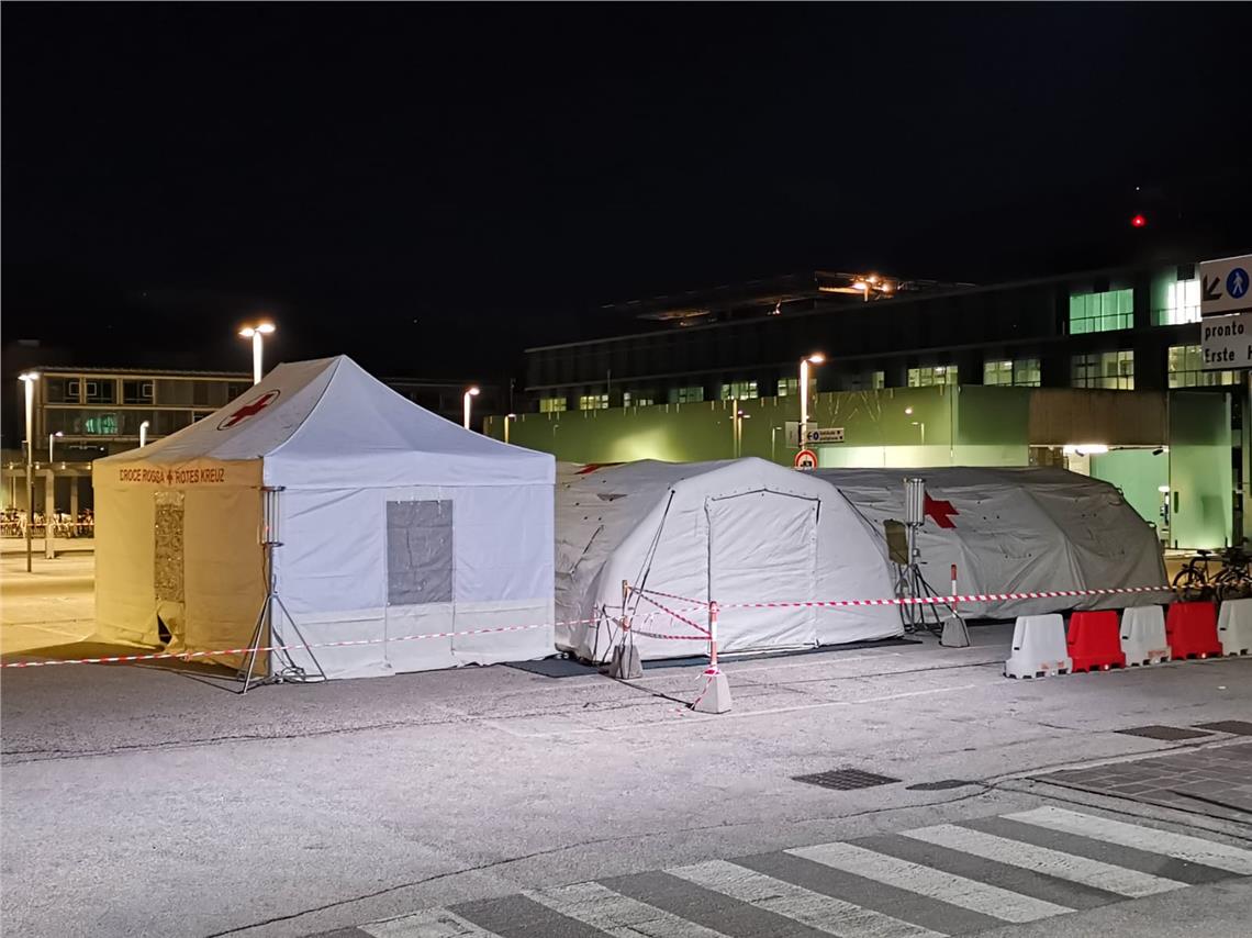 Allestite tende pre-Triage davanti agli ospedali di Bolzano e Bressanone per ridurre le possibilità di contagio.