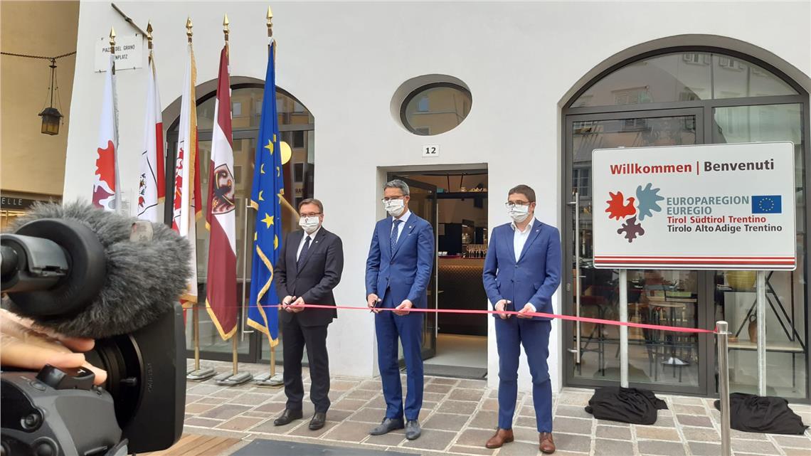I tre presidenti di Tirolo, Alto Adige e Trentino hanno inaugurato oggi (9 ottobre) ufficialmente la nuova sede dell’Ufficio comune dell'Euregio nella Casa della Pesa (Foto: ASP/Othmar Seehauser)