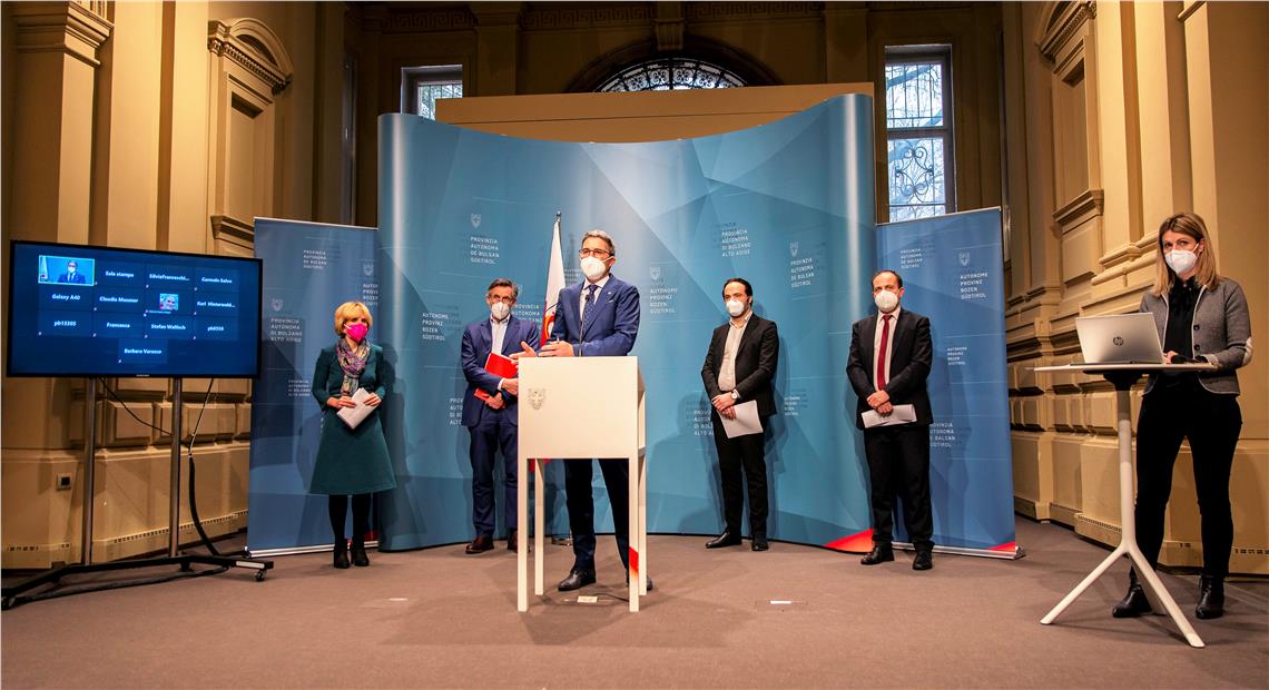 Conferenza stampa con il presidente Kompatscher e gli assessori Widmann, Deeg, Vettorato e Achammer (Foto: ASP/Fabio Brucculeri)