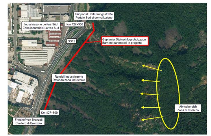 A Laives, a ovest della zona industriale situata a sud del centro abitato, verranno posate delle nuove barriere paramassi a monte di quelle già esistenti, con un investimento di 2,1 milioni di euro. Alfreider ricorda che questa opera, in grado di mettere in sicurezza un tratto particolarmente a rischio di caduta massi della strada statale del Brennero (SS12), era tra quelle in cima alla lista delle priorità elaborate dalla Provincia. "Nel 2016 – spiega infatti l’assessore – un masso delle dimensioni di 4 metri cubi aveva distrutto le vecchie barriere". "Si tratta di un intervento importante atteso e richiesto dalla popolazione locale – aggiunge l’assessore Giuliano Vettorato – che andrà a mitigare il pericolo di caduta massi in questa tratta: ora tutti i cittadini potranno sentirsi più sicuri".