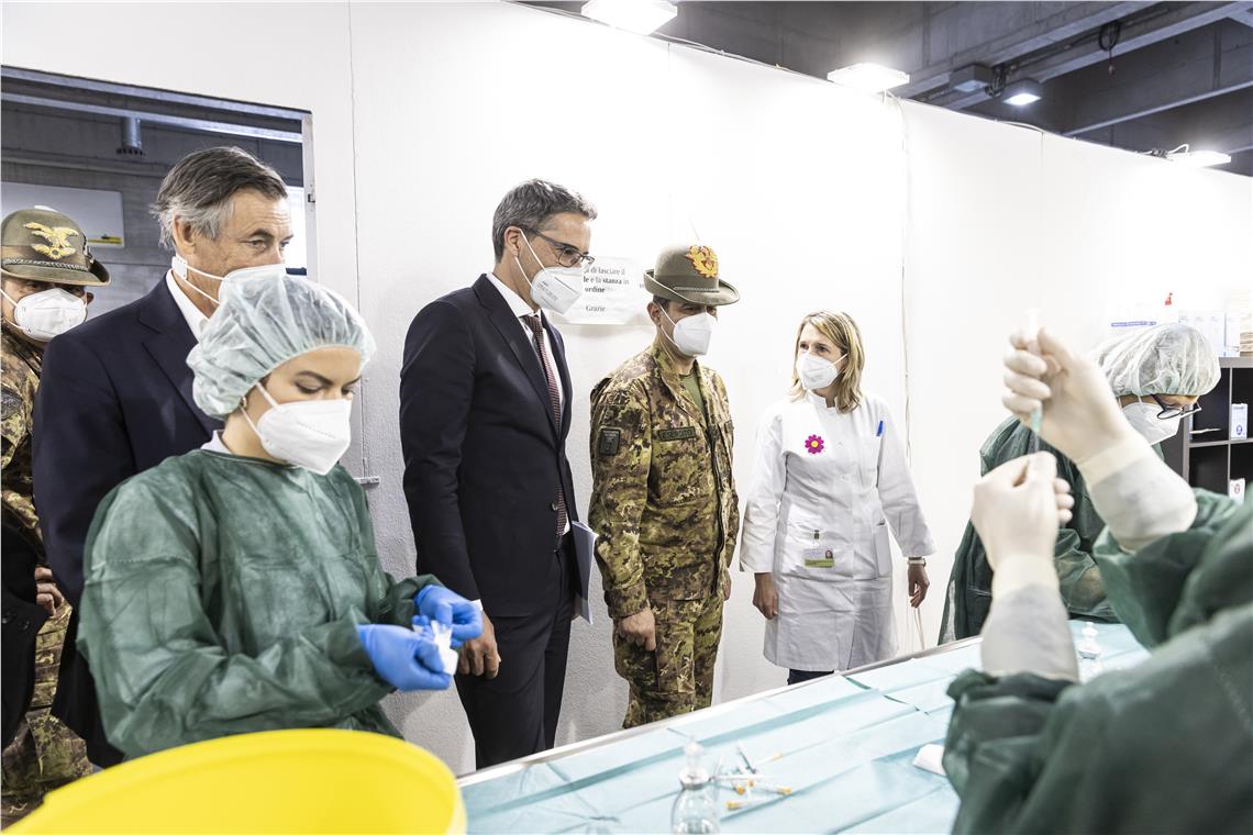 Durante il sopralluogo al centro vaccinale di Bolzano il commissario straordinario Francesco Paolo Figliuolo e il capo della Protezione civile nazionale Fabrizio Curcio sono stati introdotti dal presidente della Provincia Arno Kompatscher, che ha ricordato: "Vaccinarsi è un atto di solidarietà". Kompatscher ha poi aggiunto: "In Alto Adige abbiamo avviato da tempo un'offensiva fatta di test su ampia scala che, in parallelo con l'ampia campagna vaccinale, ci ha consentito di avviare il progetto del Corona-Pass". Secondo il presidente della Provincia "testare, vaccinare e usare il Corona-Pass sono gli strumenti fondamentali della strategia dell'Alto Adige per vincere la pandemia". Proprio sul Corona-Pass Kompatscher si è detto soddisfatto che anche a livello italiano si voglia perseguire la medesima strategia per ripristinare la possibilità di viaggiare ma anche, come preannunciato dal ministro alla Salute Roberto Speranza, anche per altri utilizzi. Per ripristinare la libertà di circolazione in Europa servirà comunque un pass digitale riconosciuto da tutti gli Stati dell'Unione e regole condivise, ha ricordato Kompatscher.