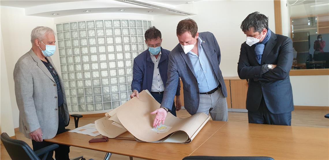 Il dirigente del Libro fondiario e il direttore dell’ufficio del Catasto di Trento hanno consegnato all’assessore Bessone i documenti storici di Colle Santa Lucia.