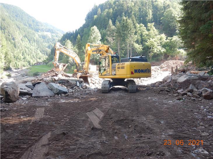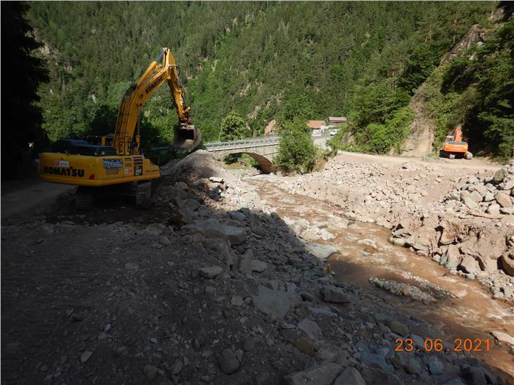 La strada per il maso Engelbert da ieri è di nuovo percorribile tramite una strada sterrata. Anche a Vanga di Sotto è stato possibile ricostruire un muro di cinta distrutto, così da garantire l’accessibilità negli edifici. Il lavoro di ricostruzione degli argini proseguirà con il paese di Vanga.