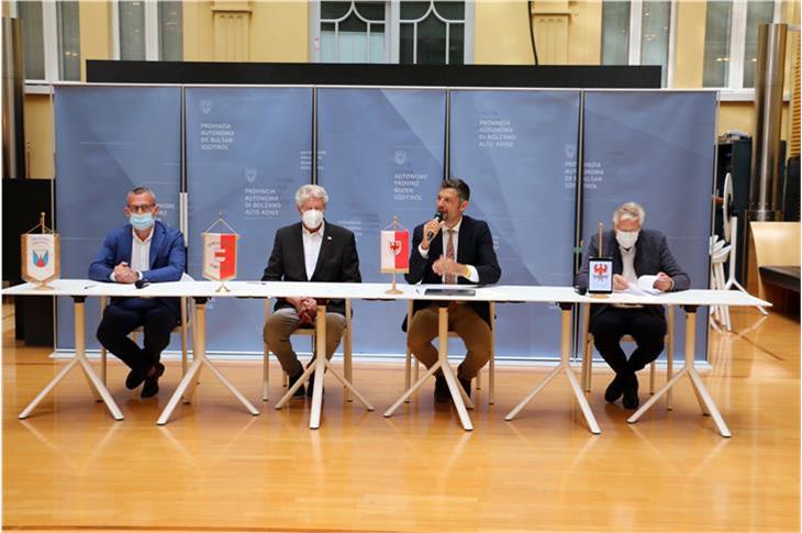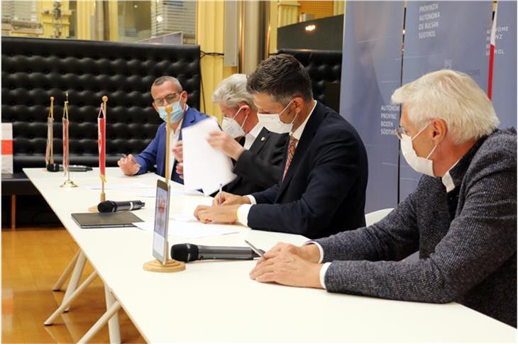 I sindaci Caramaschi e Bianchi, l'assessore Alfreider e Berger hanno sottoscritto il patto parasociale (Foto: ASP/Ingo Dejaco)