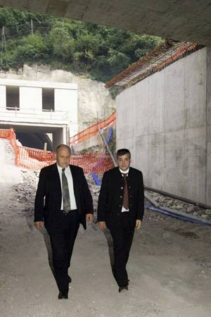 Durnwalder, Mussner, gli amministratori locali, i tecnici e i responsabili della Società italiana per Condotte d'Acqua Spa hanno effettuato un sopralluogo a San Giacomo e a Pineta, dove i tecnici hanno illustrato la situazione del lavori nei due grandi cantieri.