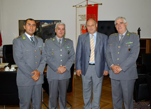L'occasione del cordiale colloquio è stata fornita dal cambio alla guida del comando provinciale della Guardia di Finanza di Bolzano: al colonnello Melchiorre Porretti, responsabile per quattro anni, è subentrato infatti da lunedì 26 luglio il tenente colonnello Domenico Fornabaio, già in forza al nucleo regionale di polizia tributaria di Bologna. I due ufficiali sono giunti a Palazzo Widmann assieme al comandante regionale della Finanza, il generale Giulio Abbati.