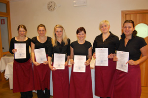 LPA - Unter dem Motto "Alles Spargel" konnten die Teilnehmerinnen des Grundseminars zeigen, was sie seit September gelernt haben. Direktorin Mechthild von Spinn beglückwünschte die Absolventinnen und überreichte die Teilnahmebestätigungen, Koordinatorin Andrea Urban lobte ihren Einsatz und Erfolg und hob das große Interesse und die motivierte Teilnahme der jungen Frauen hervor.