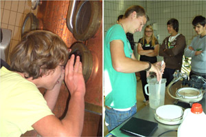 Für die 16 Schüler des vierten Spezialisierungsjahres der Fachschule für Obst-, Wein- und Gartenbau Laimburg standen in der Austauschschule Obstverarbeitung und Brennereitechnik auf dem Stundenplan. In den Theorie- und Praxiseinheiten erfuhren die Schüler das Wichtigste über die Erzeugung von Destillaten. Sie stellten auch selbst unter fachkundiger Aufsicht einen Rau- und Feinbrand aus Marillen her und setzten diesen anschließend auf Trinkstärke herab. Außerdem wurde mit tatkräftiger Unterstützung der Schüler Apfelsaft gepresst und haltbar gemacht. Zum Abschluss der Unterrichtstage in Klosterneuburg wurde ein Obstverarbeitungsbetrieb besichtigt, bei dem die Schüler und Lehrkräfte zu einer kleinen Produktverkostung eingeladen wurden.