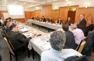Der Direktor der Landesabteilung Personal, Engelbert Schaller, erläutert den Leitern der Arbeitsschutzdienste den Aufbau des Arbeitsschutzes in der Landesverwaltung und in den Schulen des Landes.