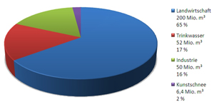 Die Landwirtschaft in Südtirol benötigt jährlich an die 200 Millionen Kubikmeter Wasser. Laut Wassernutzungsplan wird dieser Bedarf in den nächsten Jahren weiter zunehmen, da noch mehr Wasser für die Bewässerung benötigt wird. Der Wasserbedarf für die Industrie wird hingegen relativ konstant bleiben. Der Wasserbedarf für Trinkwasser wird, aufgrund des steigenden Lebensstandards, weiter zunehmen. Wegen des Klimawandels wird zudem für die Kunstschneeerzeugung mehr Wasser benötigt werden. In Südtirol beträgt die bewässerte landwirtschaftliche Fläche ungefähr 56.000 Hektar. Dafür werden jährlich, im Zeitraum zwischen April und Oktober durchschnittlich 170 Millionen Kubikmeter Wasser benötigt. Weitere 30 Millionen Kubikmeter Wasser werden für die Frostberegnung benötigt, die im Mittel für sieben Nächte im Jahr und zehn Stunden im Einsatz ist.