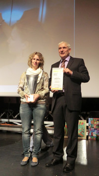 Ausgezeichnet: Peter Thaler und Verena Kapauer nehmen für das Projekt "Lehrlings-Paten" auf der "Cultura socialis" -Veranstaltung den Preis für die Sparte "Profis" entgegen.