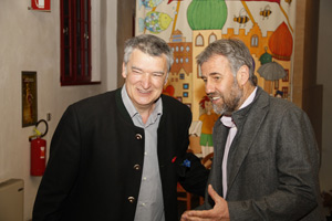 Im Anschluss gab Matthias Schönweger eine Performance der besonderen Art und begeisterte das Publikum mit kreativen Wortspielen und passender Verkleidung. Der Meraner Künstler hat für das Touriseum über die Wintermonate ein Kunstwerk der ganz besonderen Art geschaffen: Mit hunderten von Südtiroler Ansichtskarten gestaltete er die sechs Besucher-Toiletten des Museums zu wahren Sehenswürdigkeiten. Diese bleiben dem Touriseum als dauerhafte Kunstinstallationen erhalten und können während der gesamten Saison besichtigt werden.