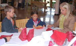 Die Palette bot für alle etwas: Brot backen, Aufstriche zubereiten, Basilikum pikieren, Servietten falten, Schlüsselanhänger aus Filz basteln, Tischdeckregeln kennenlernen, Schätzspiele, Bilderquiz zu den Nährstoffen, Kräuter erkennen. Die Kinder unterhielten sich bei verschiedenen Bewegungsspielen, etwa beim überdimensionalen "Mensch ärgere dich nicht"-Spiel im Freien, bemalten Luftballone und konnten sich am Malwettbewerb zum Thema "Kochen mit der Familie" des Katholischen Familienverbandes beteiligen. Höhepunkt des Nachmittags war der Wettbewerb "Sauer macht lustig!": Väter, Mütter und Kinder traten an und mussten möglichst viele Zitronen auspressen; als Preis winkte ein Kistl mit Bio-Zitronen.