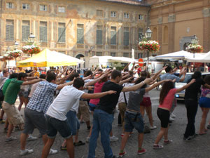 LiberaMente im Piemont: Mit Bewegung (im Bild der Flash Mob) zur Beteiligung.