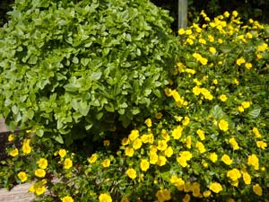 Genuss für Auge und Gaumen: Kleinblättrige Basilikumpflanzen mit Mecardonia "Gold Dust".