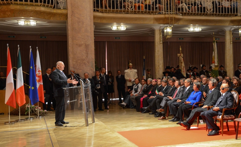 Staatspräsident Giorgio Napolitano unterstrich heute in seiner Dankesrede ("Ich freue mich sehr über diese Auszeichnung"), dass der Festakt in Meran ein wichtiges Ereignis sei, eine Möglichkeit, erneut auf die europäische Bedeutung der Autonomielösung zu verweisen. Man habe mit dem Pariser Vertrag den Grundstein für eine innovative Lösung eines Minderheitenkonflikts gelegt, betonte Napolitano, nur sei es "kein Spaziergang" gewesen, die Bestimmungen im Pariser Vertrag auch in die Wirklichkeit zu übertragen: zu groß seien lange Zeit die Schwierigkeiten unterschiedlicher Auslegungen gewesen, zu groß auch die Widerstände. "Allerdings sind diese nach und nach ausgeräumt worden", so der Staatspräsident.
