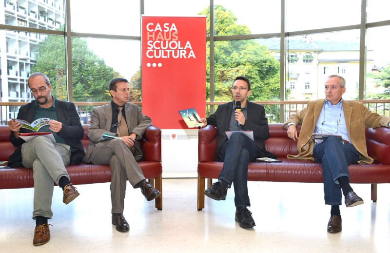 Junge Theaterprojekte vorgestellt (v.li.): Koordinator Tarter, Abteilungsdirektor Roncat, Landesrat Tommasini, Stabile-Direktor Bernardi.