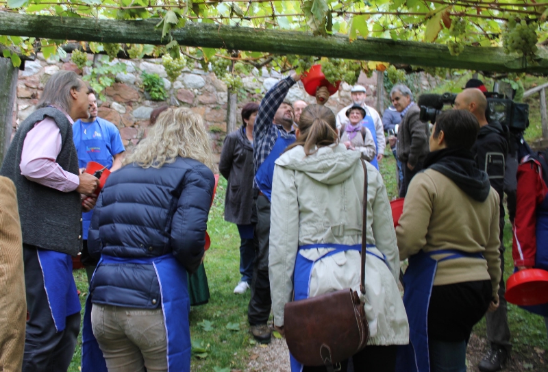 LPA - Zur festlichen Weinlese bei der größten und wohl auch ältesten Rebe der Welt, der "Versoaln", war heute (15. Oktober) beim Schloss Katzenzungen in Prissian geladen worden: Unter der Federführung des Heimatpflegevereins Tisens und mit Hilfe der Gärten von Schloss Trauttmansdorff und des Versuchszentrums Laimburg wurde gewimmt, verkostet und gefeiert.