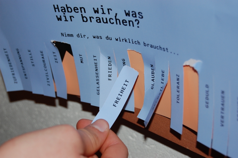 Die Aktion steht unter dem Motto „Brauchen wir all das was wir besitzen?" - eine Frage, die zum Innehalten anregt und gleichzeitig weitere Fragen aufwirft: Besitzen wir Gewohnheiten, welche wir verändern oder sogar ablegen möchten? Denken wir oft genug an andere und nicht nur an uns selbst?