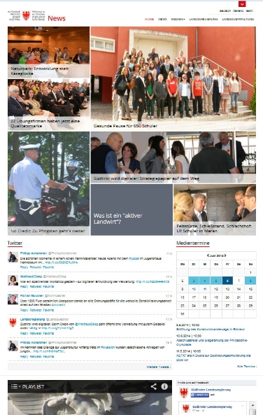 In Zusammenarbeit mit der Südtiroler Informatik AG (SIAG) hat das LPA sein Newsportal den neuen Anforderungen angepasst und dabei vor allem darauf Wert gelegt, dass alle Dienste des LPA auf einer Seite zusammenfließen. Am Seitenkopf finden sich demach auch die wichtigsten Nachrichten in Form von Presseaussendungen, darunter gibt eine Twitter-Wall einen Überblick über die Tweets von der und über die Landesregierung (und -verwaltung).