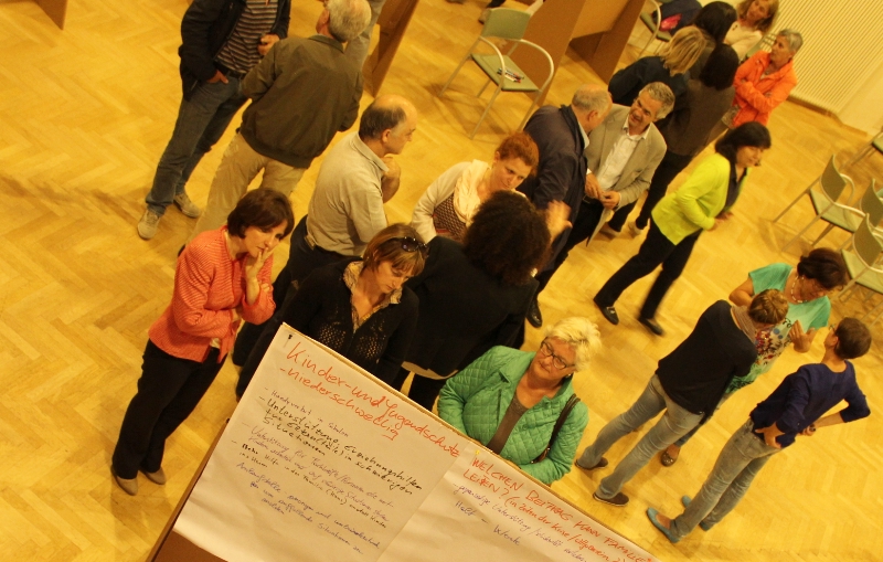 Die bessere Vereinbarkeit von Familie und Beruf durch flexiblere Betreuungsmöglichkeiten und Sommer- und Nachmittagsbetreuung war auch ein Thema, das bei allen fünf Gesprächsabenden zur Sprache gekommen ist. Parallel dazu sprachen sich die Gesprächsteilnehmenden für eine stärkere Unterstützung und Rentenabsicherung der Erziehungszeiten aus. Neben dem finanziellen Aspekt wurde dabei auch der Wunsch nach gesellschaftlicher Anerkennung der Familie als Kultur- und Wertevermittler und als Ressource für die Wirtschaft wiederholt vorgebracht.