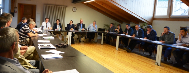 In Neumarkt hat LR Tommasini den Unterlandler und Überetscher Bürgermeistern die Infrastruktur-Projekte vorgestellt (Foto: LPA/Mair)