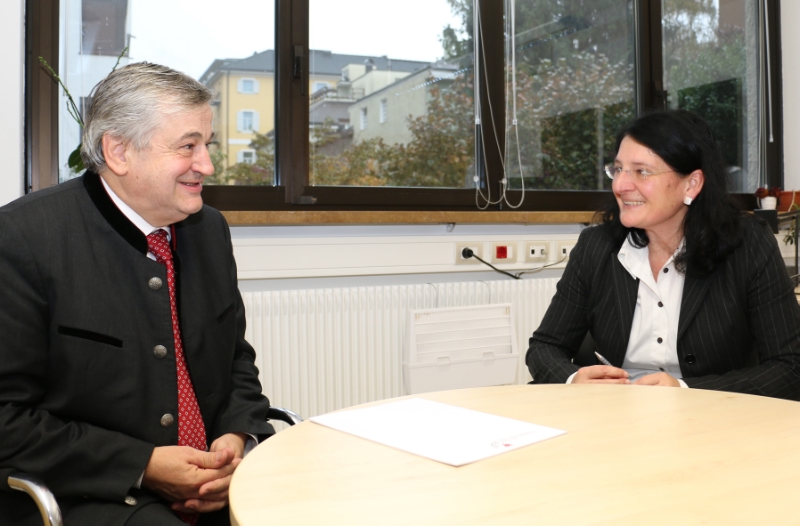 Um Möglichkeiten, Kindern und Jugendlichen ihr Recht auf einen sicheren Schulweg zu garantieren, ging's bei einem Treffen von Landesrat Florian Mussner mit Kinder- und Jugendanwältin Paula Maria Ladstätter. Einig war man sich dabei über die Bedeutung von Sicherungs- und Sensibilisierungsmaßnahmen.