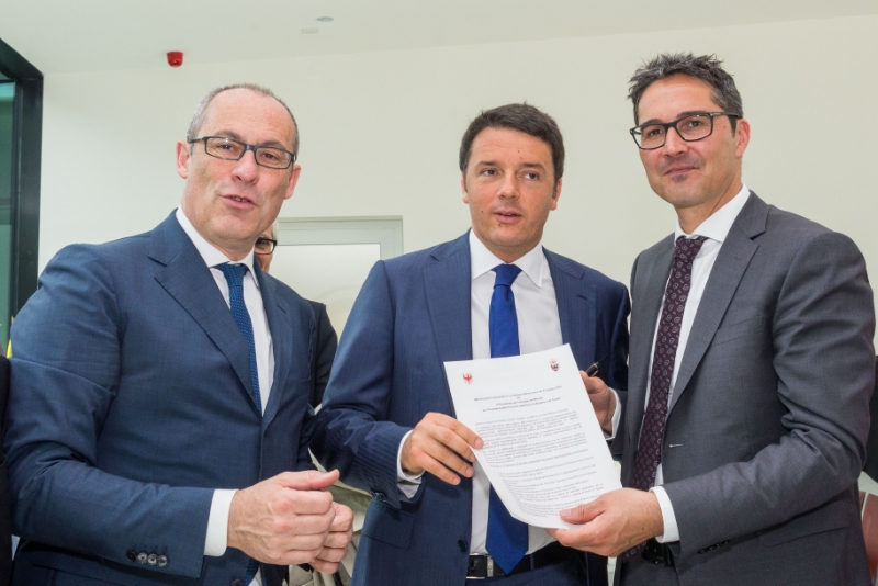 Die Landeshauptleute Kompatscher und Rossi bei der Übergabe der Autonomie-Agenda an Regierungschef Renzi - Foto: LPA/Thomas Ohnewein