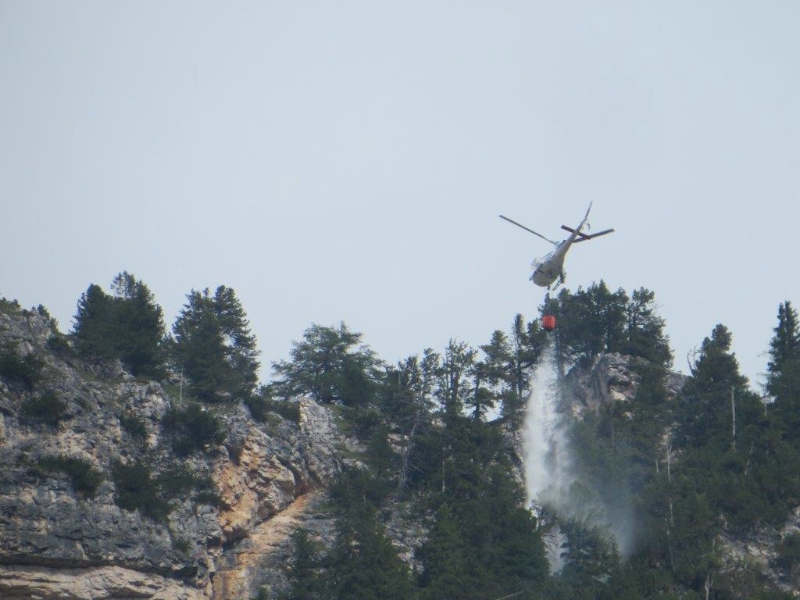 Gegen 14.00 Uhr ertönte heute (20. Juli) in Pederü in der Gemeinde Enneberg die Sirene: Latschenfelder an den Hängen des Rautals Richtung Sennes stehen in Brand, Männer der Forstbehörde und der Freiwilligen Feuerwehr und seit kurzem auch ein Löschhubschrauber sind zur Brandbekämpfung im Einsatz.