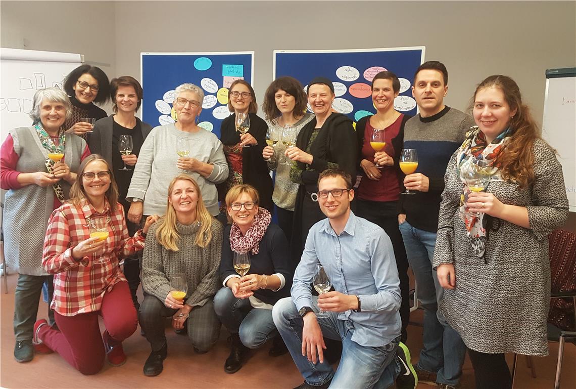 Alle Teilnehmenden unterrichten bereits Deutsch in der Erwachsenenbildung. Mit dem Abschluss des vom Landesamt für Weiterbildung organisierten Lehrgangs "Alphabetisierung/Basisbildung und DaZ mit Erwachsenen" wurde ihnen das notwendige Werkzeug in die Hand gegeben, um erwachsenen Menschen das Lesen und Schreiben beizubringen.