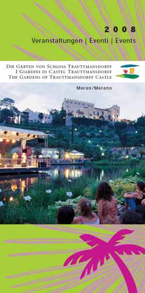Pünktlich zu Beginn der Veranstaltungen, die jeden Sommer zahlreiche Besucher in die Gärten locken, hat Trauttmansdorff seine neue Veranstaltungsbroschüre herausgegeben, die an stark frequentierten Orten wie in öffentlichen Ämtern, in Cafés, Geschäften usw. – und selbstverständlich in den Gärten selbst zur freien Entnahme aufliegt.