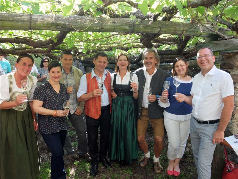 Die Gärten von Schloss Trauttmansdorff haben vor elf Jahren die Patenschaft für die Versoaln-Rebe übernommen; gestern (7. Juni) haben sie mit dem Tourismusverein Tisens-Prissian und Castel Katzenzungen ein Veranstaltungsprogramm mit Musik, einheimischen Spezialitäten und Ausführungen zur Rebe und zum Weinland Südtirol veranstaltet.