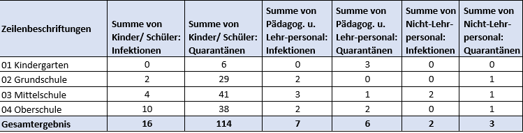 Die Zahlen umfassen nach wie vor die gesamte Kindergarten- und Schulgemeinschaft, also Kinder und Jugendliche, pädagogische Fachkräfte, Lehrpersonen und das nicht unterrichtende Personal.