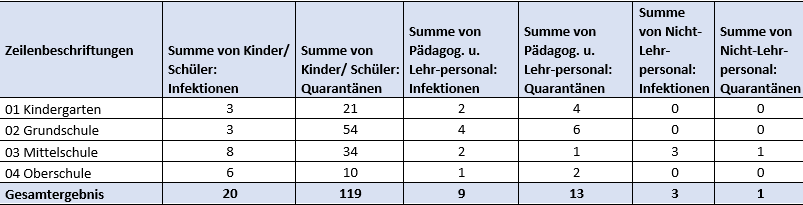 Die Zahlen umfassen nach wie vor die gesamte Kindergarten- und Schulgemeinschaft, also Kinder und Jugendliche, pädagogische Fachkräfte, Lehrpersonen und das nicht unterrichtende Personal.
